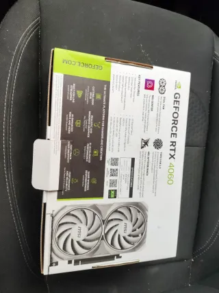 Tarjeta gráfica MSI GeForce RTX 4060 Ventus 2X en color blanco. La cambio por una más específica para jugar dos ratos y diseño de vídeo amateur. - Diseño de doble ventilador. - Acabado blanco elegante. - Estética moderna y limpia.