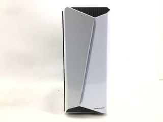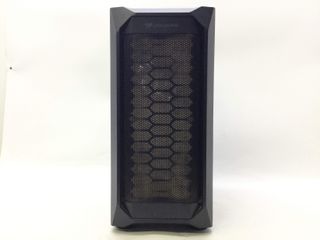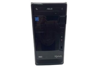 Caja para ordenador de sobremesa de la marca ASUS. - Frontal con bahías para unidades ópticas y disquetera. - Panel frontal con rejilla para ventilación.