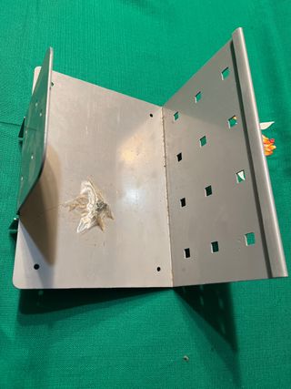 Soporte metálico para caja de PC. - Diseño extensible y útil para cualquier tamaño del PC - Agujeros cuadrados para ventilación o fijación. - Se fija a pared, mesa o cualquier mueble