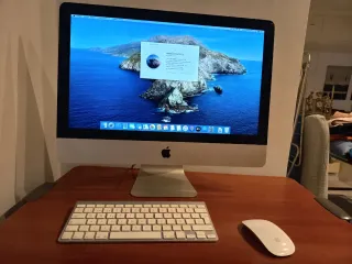 Ordenador de sobremesa iMac de 21,5 pulgadas del año 2011. Un equipo versátil y elegante. - Pantalla de 21,5 pulgadas. - Diseño en plata y blanco. El año passado hicimos una actualización en una tienda de informática y nos instaló el sistema operativo de el Capitán y Monterey. El ordenador tiene una partición con estos dos sistemas. El ordenador funciona perfectamente, però tiene sus pequeñas rascaditas. Adjunto también el trackpad. Si teneis alguna duda no dudéis en preguntar.