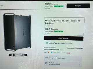 Acepto cambio por Cloudlifter o SSD 2Tb interno. Mini PC CHUWI Corebox con procesador Intel Core i5. - 8GB de memoria RAM. - 256GB de almacenamiento SSD. - Diseño compacto en color gris y plateado.