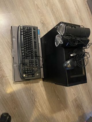 Equipo de escritorio completo, ideal para uso doméstico o de oficina. Incluye Windows 10, procesador i5, 1Tg disco duro, lector de tarjetas, grabadora DVD, monitor, altavoces y ratón. - Monitor tv con mando distancia Samsung. - Torre Nox. - Altavoces Dell. - Ratón inalambrico recargable. - Altavoces con subwoofer Dell - Teclado con iluminación. - Caja de almacenamiento y gestión de cables.