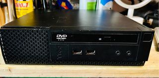 Mini PC Dell Optiplex 7050. Diseño compacto en color negro y gris. Puertos frontales: USB-C, USB-A. Rejilla de ventilación en la parte superior. No sé si funciona, al no poder probarlo ya que no tiene Memoria RAM ni Disco Duro. Tiene placa base y microprocesador en aparente buen estado. Se vende lo que se ve. No devolución.