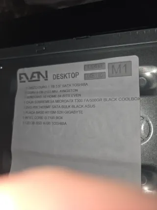 Ordenador de sobremesa con procesador Intel Core i3. - Procesador: Intel Core i3-7100 - Memoria RAM: 16GB DDR4 Kingston - Almacenamiento: SSD 480GB Kingston nuevo - Incluye unidad DVD-ROM - Lector frontal de tarjetas SD Usado 4 veces, está nuevo, impoluto, como se puede ver en las fotos