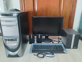 Ordenador de sobremesa antiguo completo, con win10 recien instalado, funcionaría mejor con win 7, lo instalo si se desea. Compuesto de: - Torre ATX - Placa base Gigabite GA-G31M-S2L - RAM 4Gb - Precesador Intel Core 2 Quad Q6600 4 núcleos, 2,40 Ghz, 8Mb caché, 1066 Mhz. -Tájeta gráfica PCI Express Ati Radeon RV620L3 512MB. -Disco duro SATA 500Gb -Grabadora CD/DVD LG -Lector de tarjetas, varios formatos - Pantalla LG FLATRON W1934S, 19" 1440X900 - Teclado USB y raton PS2 - Altavoces 2.1 12.5w RMS