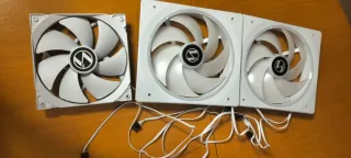Conjunto de 3 ventiladores para PC en color blanco. - Marca: Lian Li - Diseño moderno y elegante. - 2 de 160 mm. y uno de 140mm.