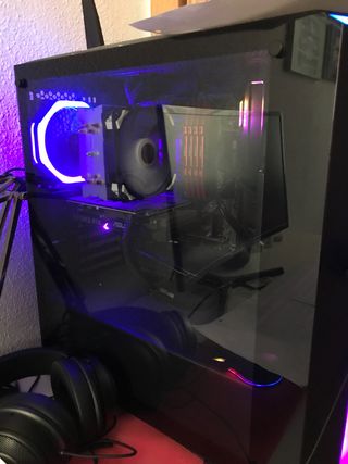 Ordenador sobremesa a recoger en Vallecas. Lleva casi 1 año sin encenderse, pero funciona todo correctamente. No tengo ni idea del procesador, lo vendo asi como esta. No se mas especificaciones que estas: - Placa base ASUS. - Tarjeta gráfica NVIDIA GeForce GTX 1660ti 6GB. - Unidad SSD Corsair MP510. - Refrigeración líquida. - Ventiladores LED blancos. - RAM 16GB Todo funciona bien, pero no tengo cable de alimentacion ni nada para desmostrar que funcione. No paso video ni mas info porque no la tengo. No mareos