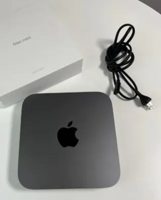 Ordenador Mac Mini de 2018 en color gris espacial. Cuenta con una configuración potente para tus tareas diarias. - 16 GB de memoria RAM. - Almacenamiento SSD de 256 GB. El precio es para gente de Badajoz se rebajaría algo