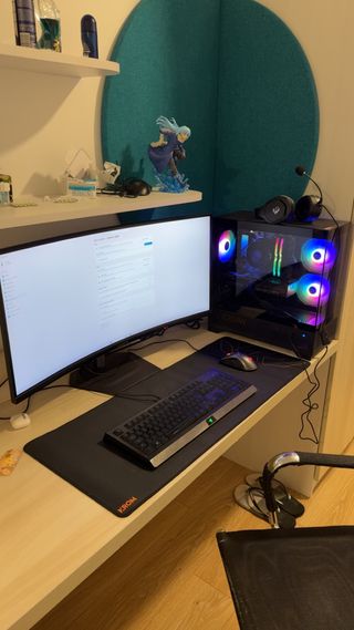 Desktop computer for gaming with insane performance. doesn't come with the monitors but I'm selling the monitor as well and if you buy it the second one comes with it for free - Antec Case. - GeForce RTX 5070 Windforce OF SFF 12G. - Ryzen 5 7600 6 Cores, 12 Threads, 5.1 GHz max boost, 3.8 GHz base - Tp-Link archer AX1800 WiFi 6 Bluetooth 5.2 - Gigabyte B650M D3HP motherboard - Lexar 2x16 GB ram DDR5 - Kingston NV3 1 Tb SSD Extra: Gigabyte G34WQCP monitor, 34 inch Free sync 180Hz If bought another 180Hz 24 inch asus monitor comes for free