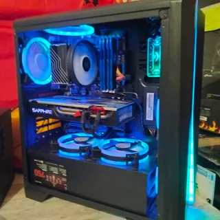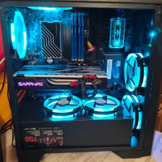PC de escritorio con iluminación LED azul. * Procesador Xeon ✅ * Tarjeta gráfica Sapphire✅ * Fuente de alimentación 750W✅ * Todas las especificaciones están expuestas en fotos✅ * VENTA a usuarios con valoración✅ * No ENVIO ✖️ * No negociable✖️ * Metacrilato lateral no incluido✖️