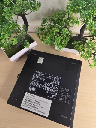 Este es un mini PC Dell en color negro. Es un dispositivo compacto y elegante. - Diseño vertical. - Puertos frontales USB y de audio. - Generacion 14 512Gb