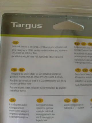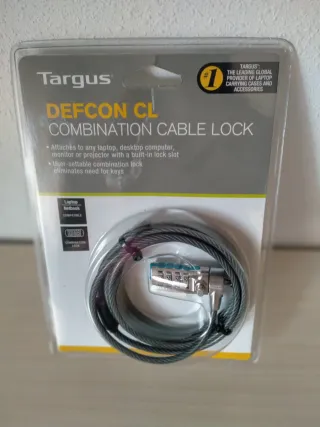 Candado de cable con combinación para proteger tu equipo electrónico. - Se fija a cualquier portátil, ordenador de sobremesa, monitor o proyector con una ranura de bloqueo integrada. - La cerradura de combinación configurable por el usuario elimina la necesidad de llaves. Nuevo, a estrenar, está precintado, longitud del cable 2 metros, mira mi perfil tengo un montón de cosas interesantes