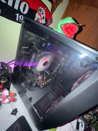 Equipo de PC gaming completo con monitor Samsung de 27 pulgadas. Estado: Muy cuidado, limpio y funcionando perfectamente Tarjeta gráfica: MSI Radeon RX 580 Gaming X 8GB GDDR5 Procesador: AMD Ryzen 7 1700 (8 núcleos, 16 hilos, hasta 3.7 GHz) RAM: G.SKILL TridentZ RGB DDR4 3466 MHz CL16 (2×8 GB) Placa base: MSI B350 Gaming Plus Refrigeración líquida: Cooler MasterLiquid Lite 240 RGB Fuente de alimentación: Mars Gaming Vulcano 750W 80 Plus Silver SemiModular Caja: Phanteks Eclipse P400 con cristal templado Almacenamiento: Samsung SSD 850 EVO 250 GB Monitor incluido: Samsung S27F358FWU - 27" Full HD