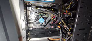 Torre de ordenador de la marca Stallion en color negro. No lleva cable de alimentación y le falta la grabadora. La tapa de la grabadora la tiene pero se suelta al tocar, hay que fijarla con algo y quedaría bien CPU: i5-6500 memoria ram KVR21N15D8/16 Tarjeta gráfica: Gigabyte D33006, V17047 DVI Fuente de alimentcion: talius p4 500s Refrigeración: CNFN6405U1 Placa base: ASUS H110M-D REV1.01