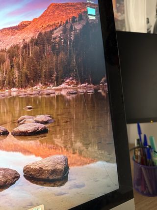 Ordenador de sobremesa iMac de Apple. Diseño elegante en color plata y negro. - cristal roto