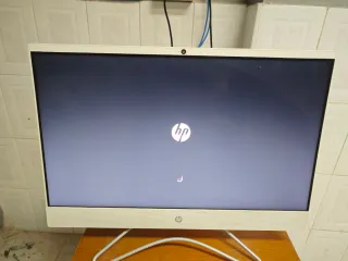 Ordenador HP en color beige y blanco. - Diseño moderno y elegante. - Ideal para uso doméstico o de oficina.