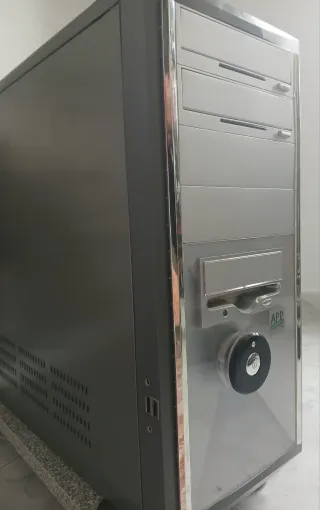 Se vende torre de ordenador de sobremesa. Es una torre robusta y en buen estado. - Perfecta para piezas de repuesto o para un ordenador básico. - Incluye la caja de la torre. Se vende sin el disco duro