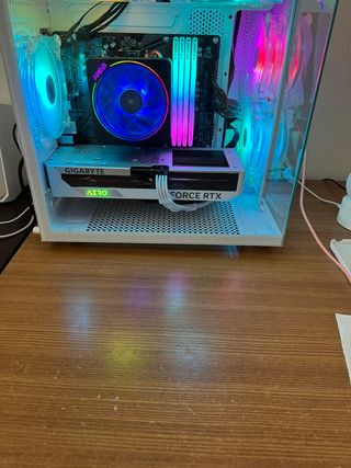 Ordenador de sobremesa listo para usar. Ideal para gaming o trabajo. Prácticamente nuevo menos de 30h de uso. Se vende incluyendo todas las cajas de los componentes y todos ellos con garantía. Placa base: Gigabyte B550M DS3H CPU: AMD Ryzen 5 5600 GPU: Zotac RTX 4060 RAM: 16 GB Corsair Vengeance 3200 MHz SSD: Crucial P3 Plus 1TB Fuente: Corsair RM650 80+ Gold Caja: Corsair 3000D Airflow Windows 11 pro