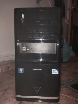 Ordenador de sobremesa Medion en color negro y plateado Contiene: -Caja Medion -Placa base -Procesador -Disipador -Ram -Unidad Dvd -Fuente de alimentación -Cable de corriente y del monitor Solo faltaria el disco duro, tengo mas piezas y cables Podemos hablar y negociar