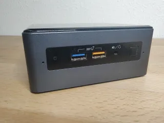 Mini PC Intel NUC modelo 8i5BEH con configuración de memoria y almacenamiento. - Fuente de alimentación incluida - 8GB de memoria RAM. - Disco de estado sólido (SSD) de 512GB. - Unidad NVMe incluida