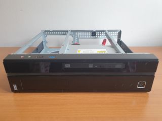 Caja ITX sobremesa sin fuente de alimentación. Se envia con unidad de DVD-RW Slim y cable de conexiones. Presenta pequeños arañazos o desgate en los paneles de la caja pero en perfecto estado en la carcasa. Los led de frontal funcionean correctamente. Soporta una unidad de 3.5" o de 2.5" con adaptador, disponible se se desea. Necesita fuente de alimentación SFX. Medidas: Ancho 32cm, fondo 28,5cm, altura 9cm.