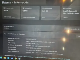 Intel NUC modelo NUC7CJYH. En perfectas condiciones de funcionamiento y aspecto. Dispone de un procesador Intel Celeron J4005, 8 GB de RAM y Disco solido SSD de 120 GB con Windows 11 Preinstalado. Con su fuente de alimentacion. - Diseño compacto en color gris y negro. - Intel Celeron J4005 -8GB de RAM -Disco solido de 120GB -Windows 11