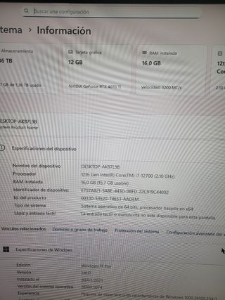 Placa base: ASUS TUF Gaming A520M-PLUS WiFi Procesador: AMD Ryzen 5 5600G con disipador RAM: Corsair VENGEANCE LPX 32GB, 4x8GB, DDR4 3200MHz SSD: Crucial P3 512GB M.2 PCIe Gen3 NVMe S.O.: Windows 11 Pro Fuente de alimentación: Aqprox 700W Tarjeta gráfica: AMD Radeon RX 580 8GB Caja PC: Oversteel Aeris color blanco con 6 ventiladores Monitor: HP Omen 27'' QHD 2560 x 1440 165Hz IPS Periféricos: Teclado mini RGB Mars Gaming, ratón RGB Mars Gaming, altavoces RGB Mars Gaming, Alfombrilla XXL gris Mars Gaming y mando PS4 Tengo todas las cajas de los componentes. Solo personas serias. Precio NO negociable. Trato en persona. Urge venta.