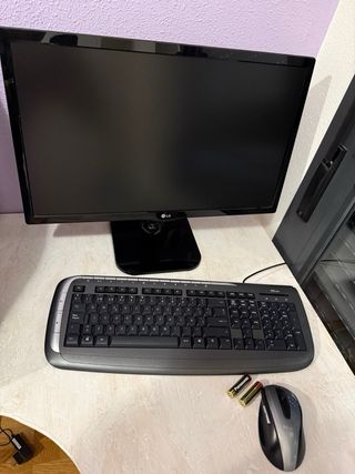 Se vende ordenador de sobremesa completo con monitor, teclado y ratón. - Monitor Samsung. - Torre de ordenador negra. - Teclado. - Ratón.