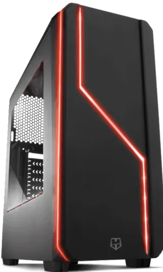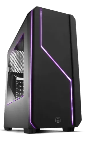 Ordenador de sobremesa con diseño moderno y llamativo. - Panel frontal con iluminación LED. - Ventana lateral de cristal templado.
