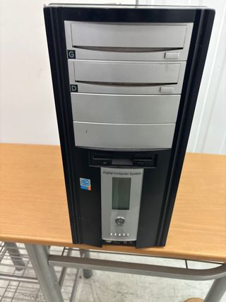 Torre de ordenador de la marca Compaq. Diseño elegante en color negro y gris. PROCESADOR- INTEL PENTIUM RAM 2G MEMORIA 40 G SIST OP WIN XP - Formato sobremesa. - Unidad óptica DVD. - Puertos frontales de fácil acceso.