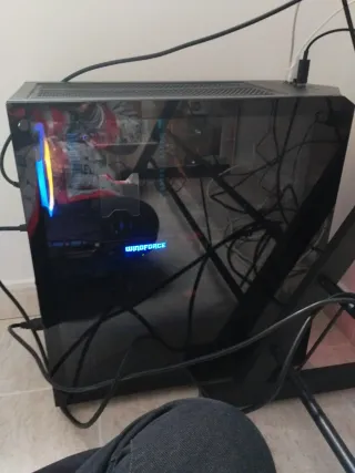 Ordenador de sobremesa para gaming con iluminación LED. Doy teclado,raton, pantalla 180hz nueva con si caja, y el ordenador! - Diseño moderno en color negro. - Iluminación interior y frontal en azul. - Componentes de alta calidad.