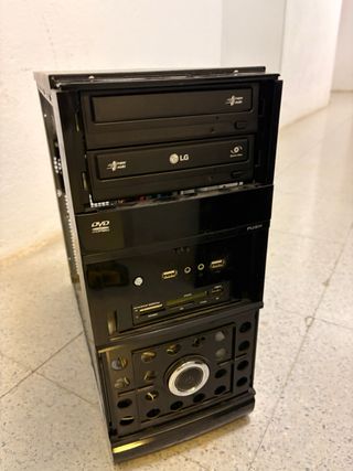 Torre de ordenador de sobremesa. - Frontal con bahías para unidades ópticas. - Lector de tarjetas integrado. - Botón de encendido frontal.