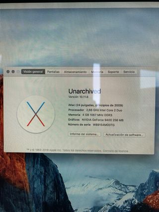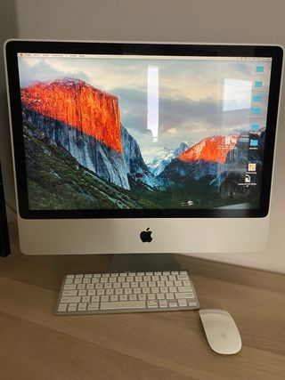 Ordenador Mac de Apple con un diseño elegante en color plateado. Esta sin uso de hace tiempo no enciende, hace sonido de entrada pero pantalla en negro. NO TIENE TECLADO NI RATON. Tengo cd's nuevos como en la imagen. Hay que reparar o para piezas. Dudas, no tardes en preguntar. taks: ordenador, portatil , windows, lg, hp, lenovo, oredenafor de torre.