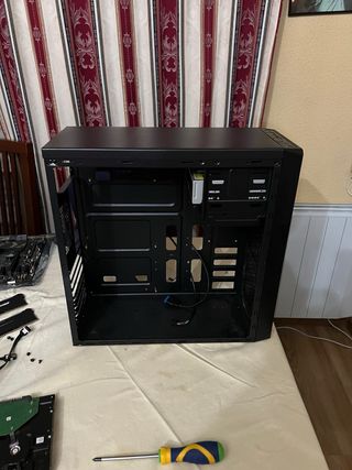Caja para ordenador de sobremesa con formato ATX. - Frontal con bahías para unidades ópticas - Puertos frontales usb/audio - Grabadora DVD y lector de tarjetas SD multi incluido. - Varios ventiladores añadidos, no son silenciosos. - Bastante sobada, algunos golpes y arañazos Lo que se ve es lo que se vende, recoger en Móstoles o envío por wallapop