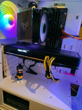 Ordenador de sobremesa para gaming con componentes de calidad. - Procesador Intel Core i7 4790. - 32GB de memoria RAM. - Almacenamiento SSD de 512GB. - Tarjeta gráfica Intel Arc A750 de 8GB. - Diseño moderno con iluminación RGB. Caja nueva Disipador nuevo Fuente de 650W nueva