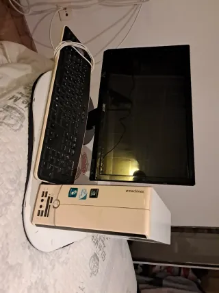 Vendo ordenador de sobremesa en buen estado. Incluye una torre HP y una pantalla táctil POSIFLEX. - Sistema operativo Windows Vista. - Procesador Intel Core 2 Duo. - Incluye lector de DVD. - La pantalla táctil presenta algunas marcas de uso.