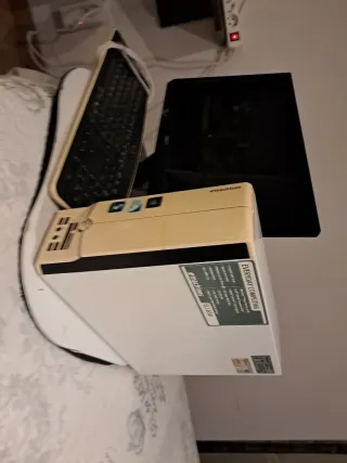 Ordenador completo de sobremesa con pantalla y altavoces incorporados: - Procesador AMD FX 6300. - 8 GB de memoria RAM (ampliables). - Disco duro de 328 GB (128 SSD). - Tarjeta gráfica Sapphire HD 7770 1Gb. - Unidad grabadora LG DVD/CD. - Puertos USB 2.0 - Windows 10 licenciado Se entrega formateado y limpio por dentro, listo para usar.