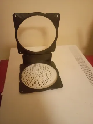 Adaptador para ventilador de PC. - Marco negro. - Rejilla blanca con perforaciones para tener tu pc más fresco es pieza custom.