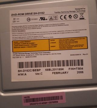 Pack de cuatro unidades de DVD-ROM modelo SH-D162C/BEBP de Toshiba Samsung, versión C. Conexión IDE. Color negro. Con muy poco uso. Para ordenadores de sobremesa. Permite realizar tareas de backup masivo, copias de seguridad simultáneas, ripping rápido de contenido multimedia (CDs/DVDs), organizar bibliotecas de películas/música en discos físicos, o incluso montar un sistema de copia de seguridad en RAID para discos ópticos, aunque es una configuración muy rara, ideal para usuarios avanzados, archivistas o instalaciones muy específicas de servidores multimedia.