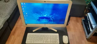Ordenador compacto HP con procesador Intel. Su diseño todo en uno lo hace ideal para cualquier espacio. - Color beige y blanco. - Pantalla de alta definición.