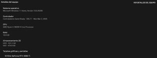 Nombre del dispositivo: DESKTOP-NB7T13V Procesador: Intel(R) Core(TM) i9-9900K CPU @ 3.60GHz 3.60 GHz RAM instalada: 32.0 GB Tipo de sistema: Sistema operativo de 64 bits, procesador basado en x64