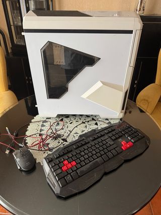 Torre de ordenador gaming, teclado y ratón