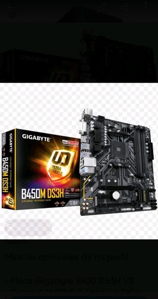 Mira las opiniones de mi perfil - Placa Gigabyte B450 DS3H V2 - Ryzen 5 1600af 3,6ghz / 4,2ghz turbo - 16gb RAM Corsair Vengance mhz - Nvidia Gigabyte GTX 1070 8gb - Fuente Semi modular 650w 80+ Bronce - Discipador 4 pipes Rgb jonsbo - Caja Hiditec V20Pro,o a elegir por el cliente del mismo precio - SSD 1 tb - Win 10pro 64bits + Office 2019 -Juegos instalados Opcional: Evil West, Ride 4, Moto GP 22, Fornite , F1 22, Metro, Ark etc -Opción a una placa mejor pagando el excedente.