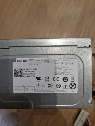 Fuente de alimentación de repuesto para ordenadores Dell. - Color plateado. - Conexiones para componentes internos.