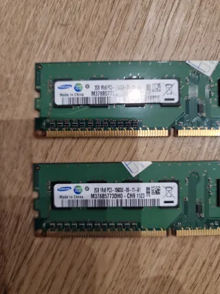 Dos módulos de memoria RAM Samsung DDR3 de 2GB cada uno. (10€ c/u precio x las dos) - Capacidad total: 4GB (2 x 2GB). - Velocidad: PC3-10600U (1333MHz). - Formato DIMM para PC de escritorio.