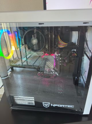 Torre de PC Gamer con un diseño moderno y llamativo. Iluminación RGB. ⚙️ Ryzen 5 5600 ⚙️ 16GB RAM (Ampliable +2 slots) DDR4 ⚙️ Gráfica AMD Radeon 6600 Fighter ⚙️ 400GB SSD ⚙️ 300 GB SSD + 1TB HDD Externo 🔨 Caja Nfortec 🔨 Placa Base AsRock B450 Steel Legend 🔨 Fuente de alimentación 650W 🔨 Windows 11 Pro Perfecto para juegos como Fortnite, Valorant, CSGO, Minecraft, LoL y muchos más. Mas de 200 FPS. ACEPTO INTERCAMBIOS Y PRECIO NEGOCIABLE