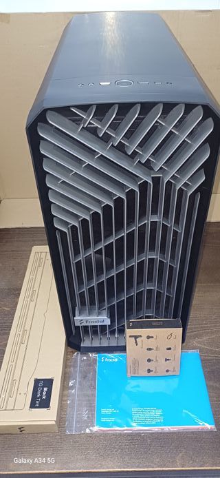 Caja de PC Fractal Torrent en color negro con panel lateral de cristal templado tintado. PROCeDENTE DE STOCK . Ventiladores 2uni. con aspas rotas. (ver foto num. 8) - Diseño ATX. - Incluye 5 ventiladores. - Panel frontal con rejilla para ventilación.