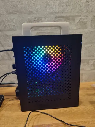 💻 Mini PC ITX de Alto Rendimiento – Como Nuevo Se vende mini ordenador ITX montado hace aproximadamente un mes. El equipo se ensambló como mejora desde una plataforma Xeon, pero finalmente se vende por volver a la plataforma anterior, no por fallos ni problemas. 🔧 Especificaciones: Placa base: B650i formato ITX Procesador: AMD Ryzen 5 7600 Memoria RAM: 64 GB DDR5. 2x32gb Almacenamiento: 1 TB NVMe Tarjeta gráfica: NVIDIA GTX 1660 Super Fuente de alimentación: 600 W Sistema operativo: Windows 11 instalado 🛠️ Modificaciones de la caja: Laterales modificados para mejorar la ventilación.