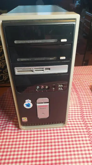 Torre de ordenador Compaq Presario SR2000 - Pentium D 2.8ghz - 2gb DDR2 ram - 232gb HDD (disco duro) - Windows 7 Ultimate (no activado) - Sin cable de alimentación - El ordenador funciona perfectamente. *Tiene huecos taladrados en la tapa lateral para ventilación extra cuando usaba una GPU* Ver fotos*