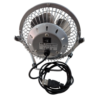 Ventilador USB Orbegozo PW 1019 (Metálico) Ventilador de sobremesa compacto y potente. Ideal para teletrabajo, oficina o mesita de noche. TIENE ALGUNA PEQUEÑA MARCA DE USO. Conexión: USB (PC, Powerbank o cargador de móvil). Material: Estructura metálica resistente (no es de plástico). Ajuste: Cabezal inclinable para dirigir el aire. Estado: Impecable, funciona perfectamente y es muy silencioso.